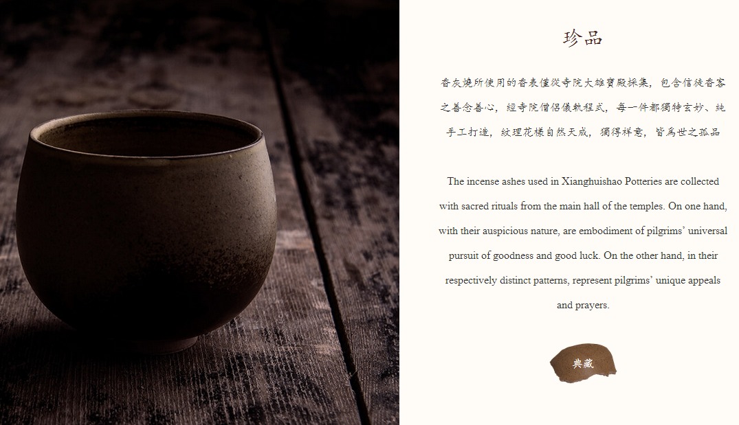 香灰烧,创始于2013年,由设计师晏钧先生发明,海晏堂自主设计研发、生产制作、经营流通的高端艺术品品牌。所以这样的艺术品牌首先对网站的整体设计提出了很高的要求,首先是符合品牌的基本定位,又要迎合其商业价值的表现。
