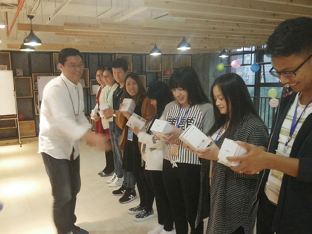 最后,市场和睿亿组取得了团体比赛的冠军。互联网大厦邓总、我公司尚总、蒋总为获奖组的每一名同事颁发了奖品,尚武科技全体同事也在比赛后合影留念。