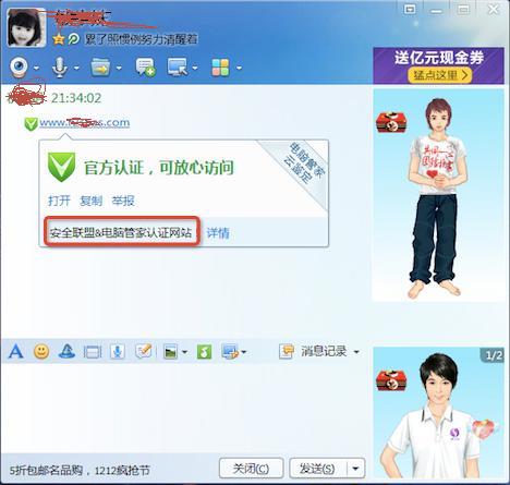 其实不仅仅是QQ,腾讯旗下的QQ电脑管家、QQ浏览器等产品都相继在使用安全联盟所提供的网址安全数据库,这就大大为数亿QQ用户提供了安全保障。为此专家也呼吁广大消费者:消费者应当增强自身网络安全防范意识,上网需认准安全联盟认证V标识,上网就上V网站。