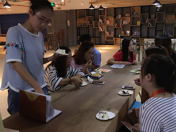 本次生日会的寿星分别是技术部的朱浩森,常俊梅,睿亿部的周曼,张晓鹏,实习生安晓哲。当天,由于朱浩森出差,未能参加此次生日会,所以在场的只有四位寿星。不过,大家已经通过电话集体欢唱了生日歌表达了对寿星朱浩森的祝福。