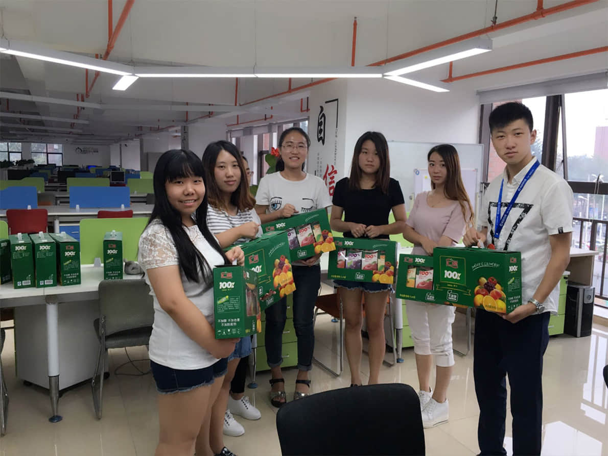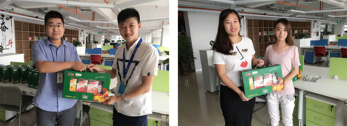 2016年中秋即将来临,为祝福员工度过一个团圆喜庆的中秋佳节,体现公司关爱员工的企业文化理念,公司特为全体在职员工购置了中秋礼品:汇源100%果汁每人一礼盒。